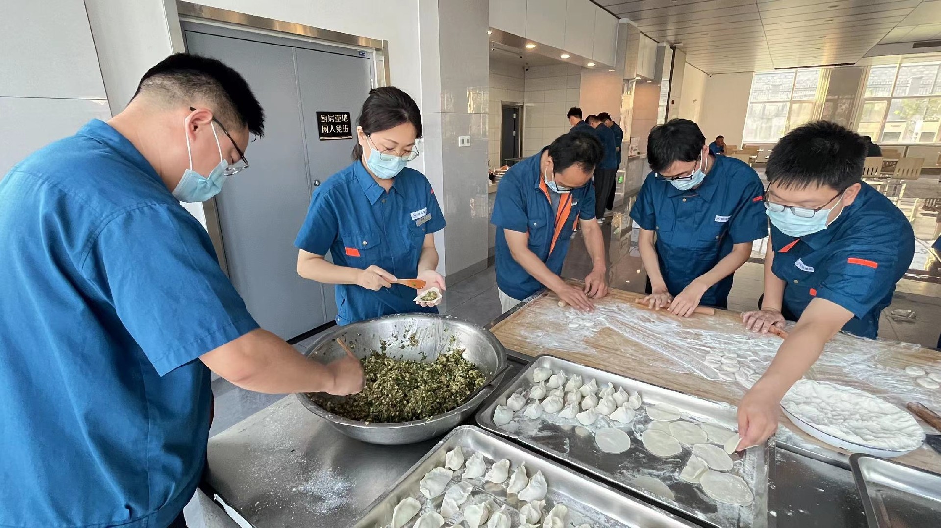 晚上,企業(yè)管理中心為導師及新員工們準備了豐盛的歡迎冷餐會,按照膠東的習俗,每逢大事吃團圓餃子,大家一起和面,一起拌餡,一起動手包水餃。師傅們紛紛對徒弟表示:“吃了水餃,咱們就是一家人了,好好干。”師傅徒弟和公司領(lǐng)導相對而坐,開懷暢飲,暢所欲言,自己包的餃子格外的香。
