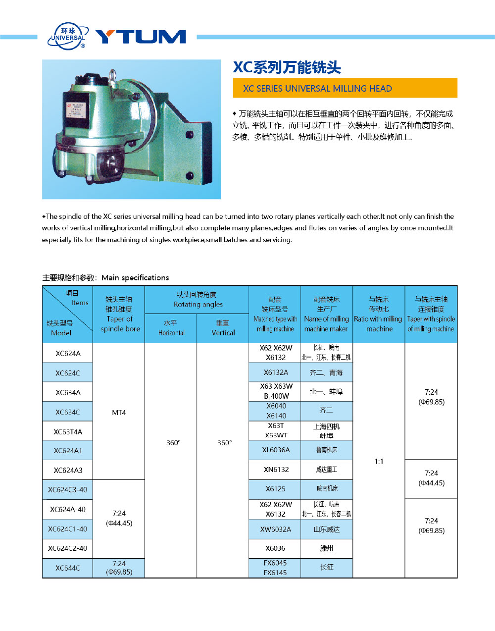 XC系列萬(wàn)能銑頭
